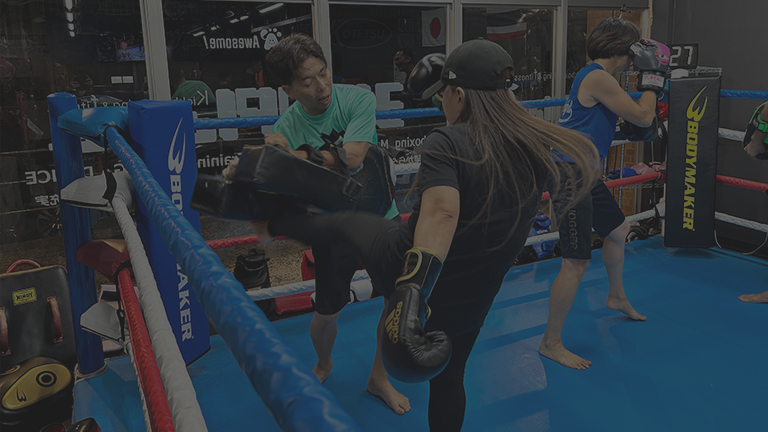 ⾮⽇常的な時間を過ごせて、ストレス発散できます。友達にキックボクシングを習っているというだけで、かっこいい!と⾔われるし、今まで運動は苦⼿でしたが、楽しく続けられるので、テクニックも上達していきたいと向上⼼もあがります。(レディースキックボクシング)